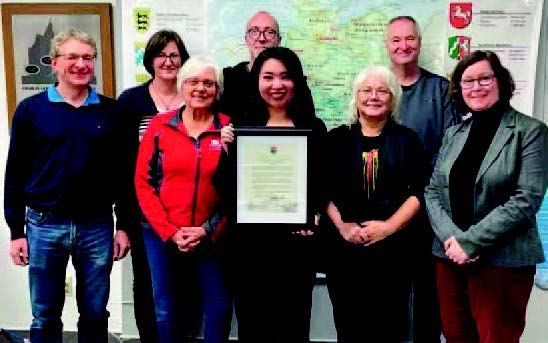 Members of the GCC board received MLA Jennifer Chen’s commemorative certificate on November 12. From left to right: Axel Buerkle, Esther Toews, Erna Wiens, Lars Richter, Jennifer Chen, Carola Lange, Ralf Klenke,