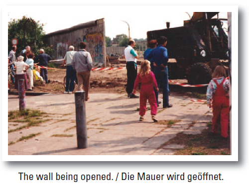 Im Frühling 1989, las ich einen Meinungsbeitrag von Fred Cleverley in der Winnipeg Free Press. Er spekulierte, was passieren würde, wenn Ost und Westdeutschland wieder vereinigt wren. Ich konnte nicht verstehen, was ihn dazu bewogen hatte, sich mit einer solch lächerlichen Idee auseinanderzusetzen. Die Mauer wird niemals fallen; ganz sicher nicht zu meinen Lebzeiten. Springen wir vor zum 9. November 1989, als mein Mann und ich abends die Nachrichten im Fernsehen anschauten. Wir beobachteten jubelnde Menschenmengen, die an der Mauer sangen und feierten während die Kontrollpunkte geöffnet wurden und Ost Berliner die Grenze nach West Berlin überquerten. Was wir da miterlebten, fühlte sich surreal und emotional überwältigend an. Ich fühlte Freude aber auch eine tiefe Traurigkeit, weil ich in Kanada war und nicht persönlich an den Feierlichkeiten teilnehmen konnte. Ich bekam ein so schlimmes Heimweh, dass mein Mann und ich zum nächsten Sommer eine Reise nach Berlin buchten.